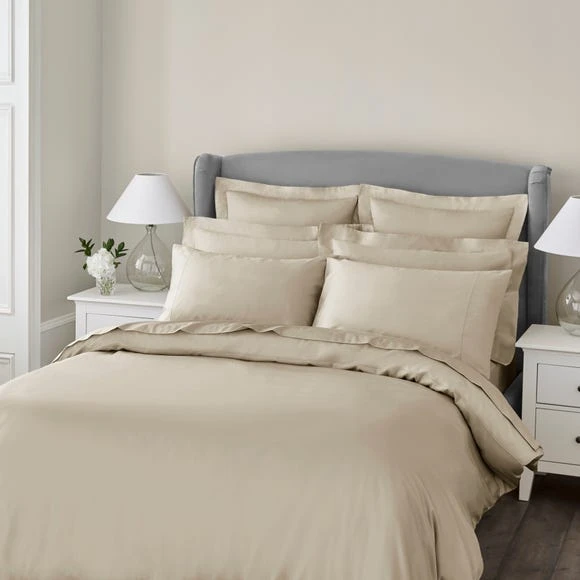 Made from sumptuously soft 100% cotton sateen with a 300 thread count providing opulent handle, this duvet cover is designed in an elegant natural colourway and is machine washable for easy care. This duvet cover comes with a premium 10 year guarantee, in a variety of sizes and a has wide range of coordinating items available.