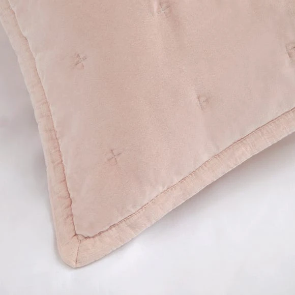 Beautifully crafted from 100% cotton with recycled polyester wadding, the Dorma Adeena continental pillowcase features a gorgeous textured stone washed velvet. Indulge in the luxuriously soft pillowcase which has been finished with a elegant oxford edging in a blush pink colourway. Available in a variety of colours and a coordinating bedspread.