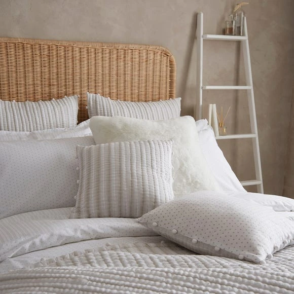 Boasting a dainty spot design combined with a delicate stripe pattern, printed on 300 thread count cotton percale fabric, and finished with a smart bias piping, this bedding set is ideal for adding a simple yet stylish touch to your bedroom. Layer this bedding with our super soft co-ordinating Coddington bedspreads, cushion, and pillow shams for a sumptuous finish. Extra pillowcases are also available.