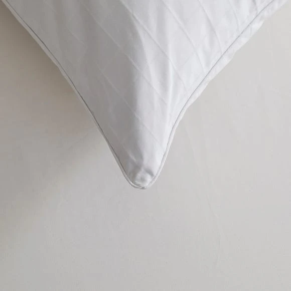 Carefully crafted in the UK with a three-year guarantee, this soft-support Dorma pillow is filled with top quality, luxurious 70% Hungarian goose down and 30% feather. Hungarian Goose Down is known for its outstanding softness and insulating properties which help to prevent drafts and cold spots to keep you perfectly snug at night. This pillow has a sumptuous 300 thread count, is covered in a crisp 100% cotton jacquard for added comfort and finished with a piped edge for excellent durability. Keep your pillows in tip top condition for longer with our range of Pillow Protectors.