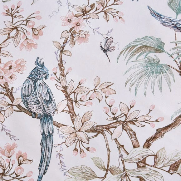 Flowers, foliage and feathered friends feature in full colour across our statement Lillian design. A dusky lilac base shade brings warmth to this cotton sateen pillowcase pair, with a 300 thread count that ensures nightly comfort. Complete with a neatly piped edging and a zipper closure, these pillowcases are fully machine washable.