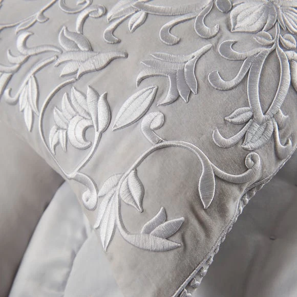 Crafted with a 100% cotton cover and filled with duck feathers, this grey cushion from the reknowned Dorma range is exquisitely decorated with a 3D embroidered floral motif.