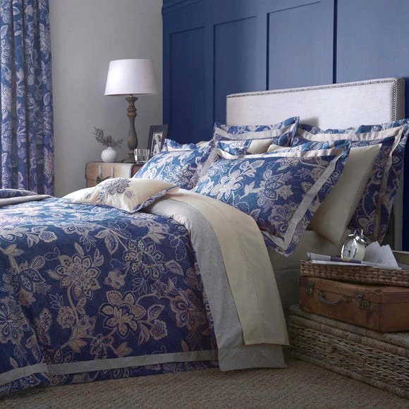 This royal blue pillowcases feature a classic Jacobean and paisley pattern and an oxford hem. Crafted from luxurious 100% cotton and with a 300 thread count our samira oxford pillowcase is from the regal Dorma range.