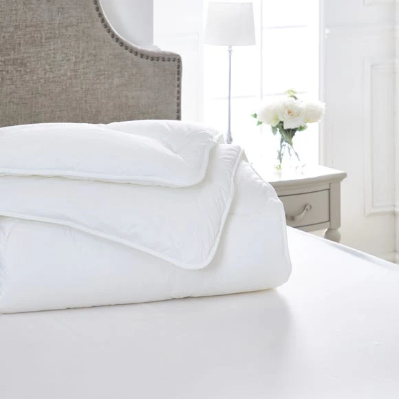 For a premium synthetic down like alternative, this sumptuously crisp and silky 10.5 tog duvet from the stylish Dorma range is ideal for a comfortable night’s sleep all year round. Crafted from the finest synthetic fibres encased within a crisp cotton cover for breathability and to keep you cool, this duvet is light weight and extra soft just like down. With a luxurious 230 thread count, it has been manufactured in the UK and is designed with a bound edge for added durability.