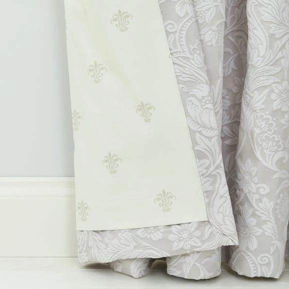 Patterned with a raised jacquard design in grey, this pair of curtains from the Dorma range feature a blackout lining to reduce unwanted light and noise, complete with an eyelet header for easy installation and available in a choice of sizes.