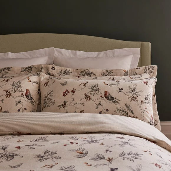 Give your bed a high end makeover with our Dorma Woodland oxford pillowcases. Adorned with a woodland birds design, these pillowcases have been crafted with a luxuriously soft 100% brushed cotton material so you can snuggle down this winter. A coordinating duvet cover set is available to create a premium bed look.