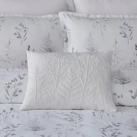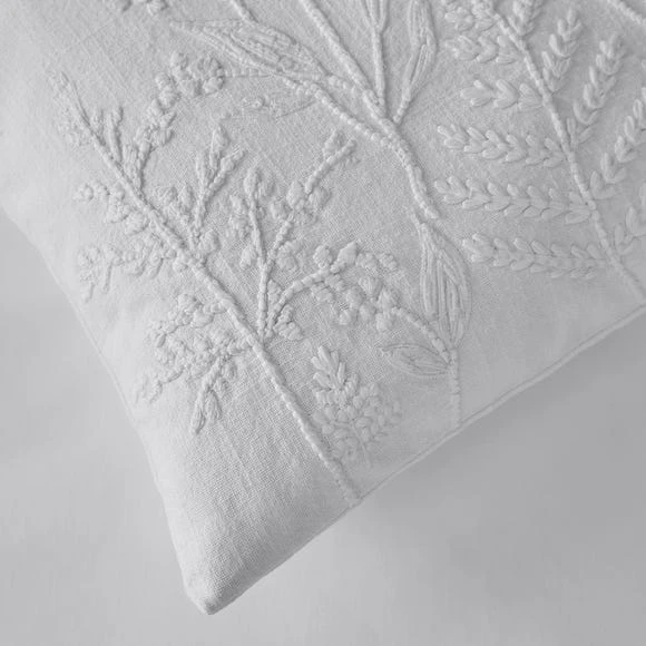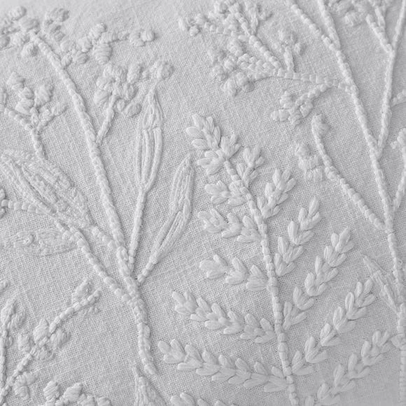 The perfect cushion to coordinate with the elegant Purity Botanical printed Dorma bedding range. A sophisticated embroidered floral design in fresh white is stitched onto a white cotton slub base. This cushion is bound to bring a touch of tranquility into your chosen room. A 10-Year guarantee is provided with this Dorma cushion.