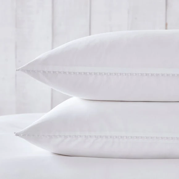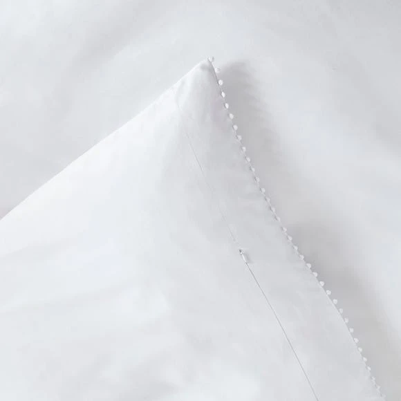 Boasting a beautiful plain cotton jacquard print, this Dorma Nimes Oxford Pillowcase Pair adds a timeless and elegant touch to your bedroom. Featuring a pretty embroidered bobble trim stitched into our finest 300 thread count cotton satin fabric this Nimes Pillowcase Pair showcases a restful design with a subtle global influence. Made from 100% cotton this pillowcase set is soft, durable, and machine washable. Other coordinating bedding is also available.